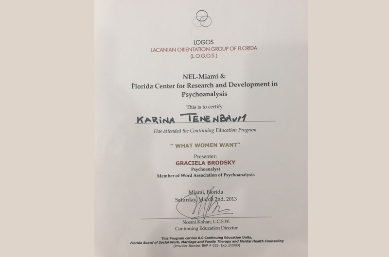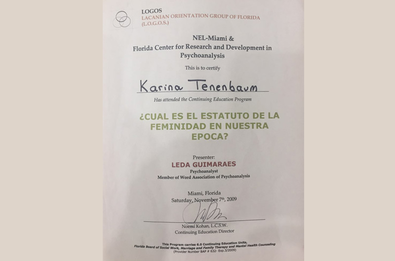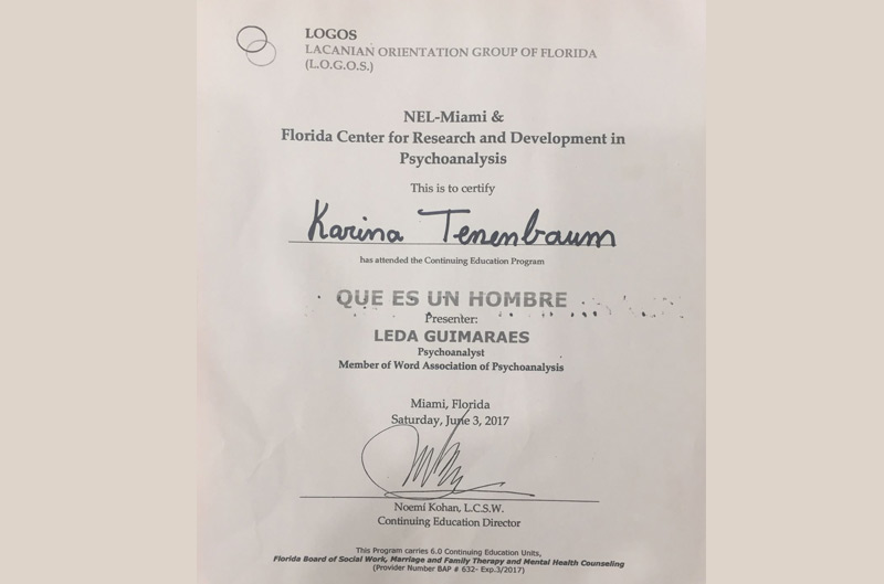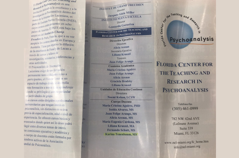 NEL Miami & The Florida Center for Research & Development in Psychoanalysis. Miami, 2017