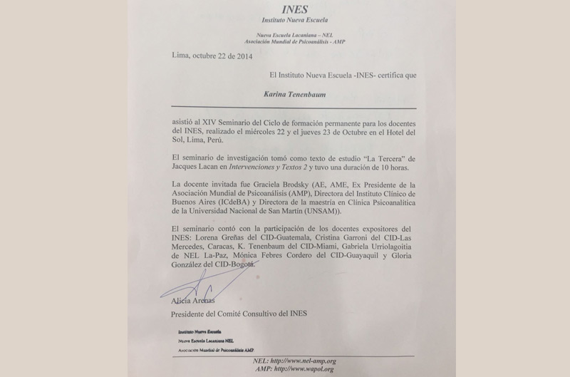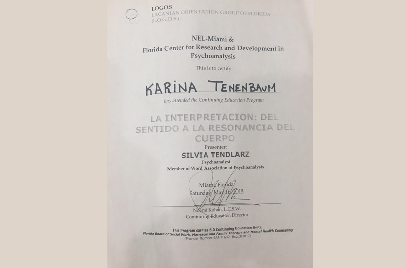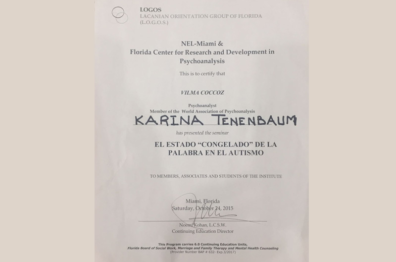 NEL Miami & The Florida Center for Research & Development in Psychoanalysis. Miami, 2015